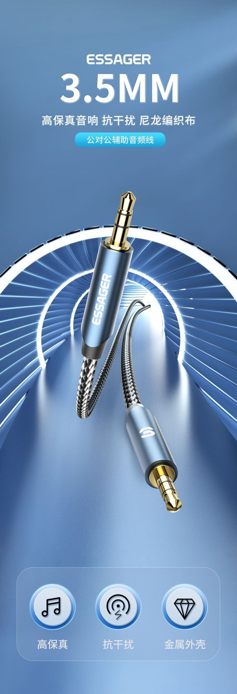 35mm Public-to-public Audio Vehicle-mounted Sound Equipment For Cellphone Cable